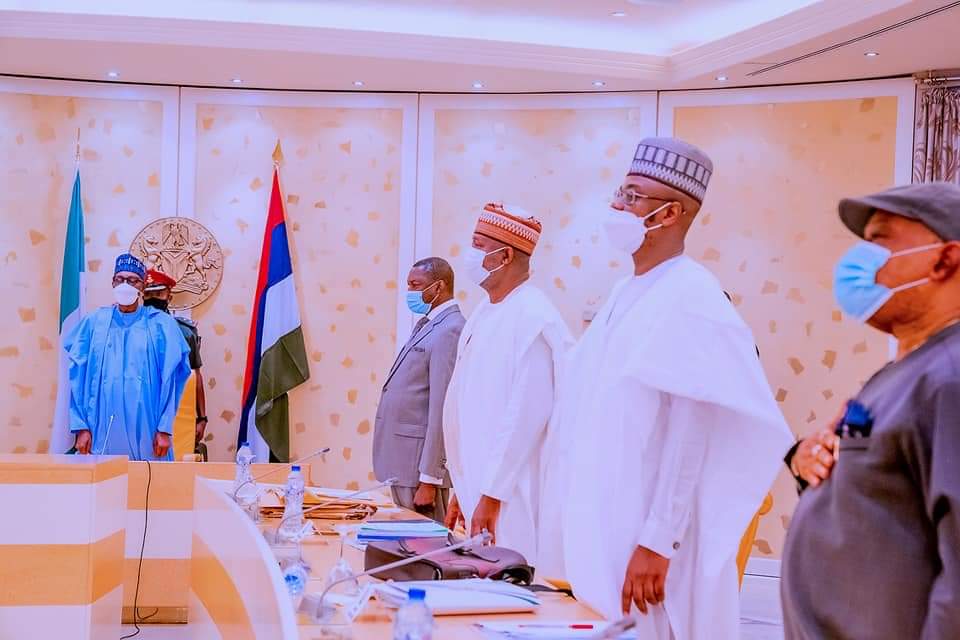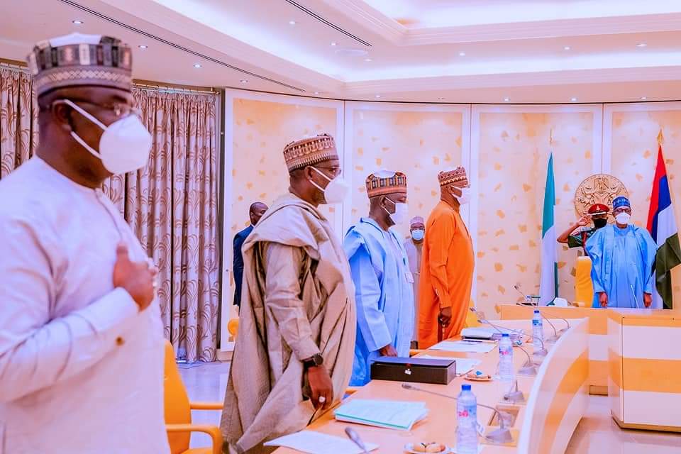 Also present are Ministers of Communication and Digital Economy, Isa Pantami, Aviation, Hadi Sirika, Attorney General and Minister of Justice, Abubakar Malami; and Labour, Dr Chris Ngige.