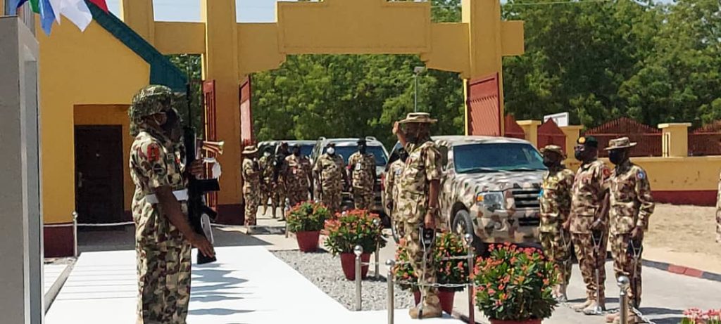 The Minister of Defence Major General Bashir Magashi rtd has led Chief of Defence Staff and Service Chiefs on an operational visit to headquarters Theatre Command Operation Hadin Kai Maimalari cantonment Maiduguri.