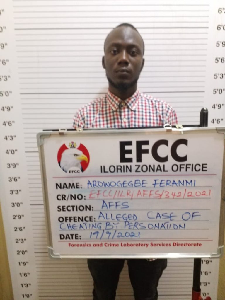 The Ilorin Zonal Command of the Economic and Crimes Commission, EFCC, had dragged Arowosegbe Feranmi,before the court on two count charges to which the defendant pled guilty when the charges were read to him.
