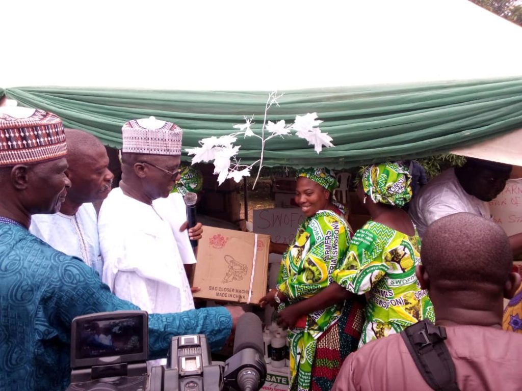 Items distributed include seeds, oil palm seedlings, vines of orange flesh, sweet potatoes, one node vine cuttings of yam and its seeds, cassava stems as well as different agricultural equipment.