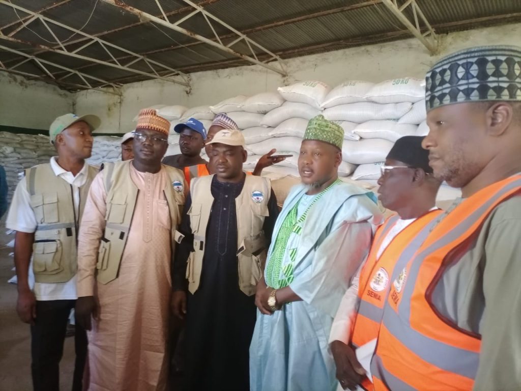The National Emergency Management Agency (NEMA) has donated relief materials and presented 7,415 bags of grains to victims of flooding in Kano state.