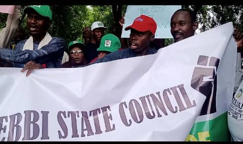 Addressing protesters, at the Deputy Governors office in Birnin Kebbi, the Acting Chairman of the Union, Comrade Kilani Abdulwaliyu, reiterated the readiness of the union to resist every action of the government to inflict suffering on Kebbi State workers and masses.