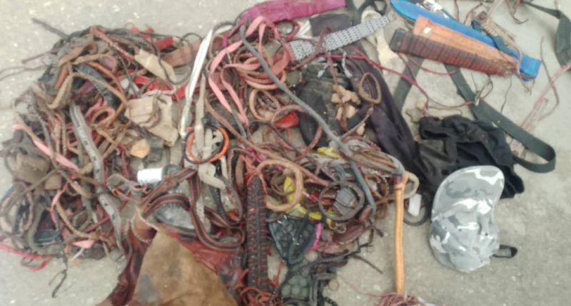 Items recovered from the suspects included one pump action rifle, five locally made guns, 94 sticks, 16 swords, 18 cutlasses, 32 locally made ‘barandami’ weapons, 18 knives, a bow, 23 arrows, seven catapults, 45 stones, and 14 motor vehicles.
