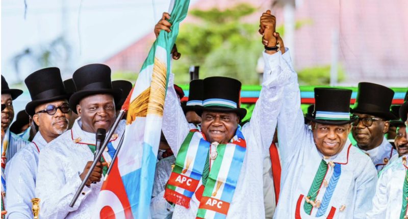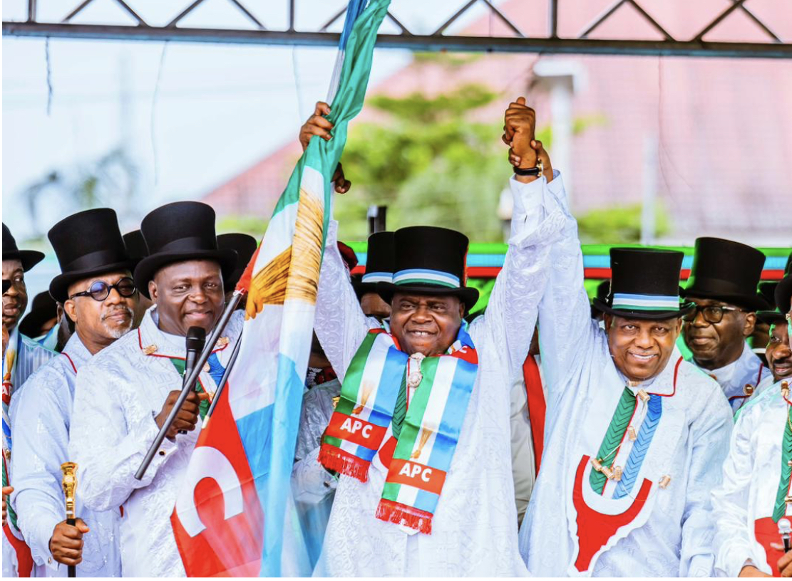 The event culminated in the formal presentation of the APC flag to Governor Diri by the party’s National Chairman, marking his official entry into the ruling party.